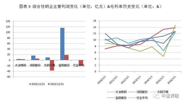 行業(yè)基本面的整體回暖難以掩蓋企業(yè)間的結(jié)構(gòu)分化,部分企業(yè)財(cái)務(wù)數(shù)據(jù)跑輸行業(yè)平均表現(xiàn),甚至變化趨勢與行業(yè)周期相背離,主要體現(xiàn)為資源型鋼企。另外,同是經(jīng)營改善的企業(yè)中也存在不同驅(qū)動因素的分化,本輪鋼鐵行業(yè)的強(qiáng)勢復(fù)蘇既有落后產(chǎn)能淘汰等中長期產(chǎn)業(yè)結(jié)構(gòu)升級因素,也有庫存周期和基建投資推動的短期因素,不同的驅(qū)動因素將決定企業(yè)業(yè)績恢復(fù)的可持續(xù)性。依賴建筑鋼材和中低端板材的鋼企雖在短期內(nèi)基本面均向好,建筑型鋼企受短期補(bǔ)庫存和地條鋼整頓等影響表現(xiàn)短期內(nèi)甚至好于其他產(chǎn)品結(jié)構(gòu)較優(yōu)的鋼鐵企業(yè),但從中長期行業(yè)發(fā)展趨勢看,基本面復(fù)蘇的支撐仍以具有產(chǎn)品結(jié)構(gòu)優(yōu)勢的大型綜合鋼企和特鋼企業(yè)較強(qiáng)。